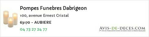 | Gisele Josette MIOCHE ( 88 ) | 15/09/20 | Puy-de-Dôme | Aydat | |